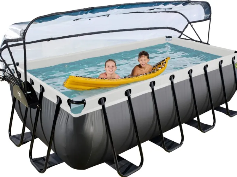Der stählerne schwarze Rahmen des Pools ist extra dick mit einem Durchmesser von 50 mm und die Rahmenbeine sorgen für optimale Stabilität, sodass der Pool immer fest stehen bleibt. Natürlich ist auch an Langlebigkeit gedacht: der schwarze Rahmen ist galvanisiert und pulverbeschichtet, damit Rost keine Chance hat.