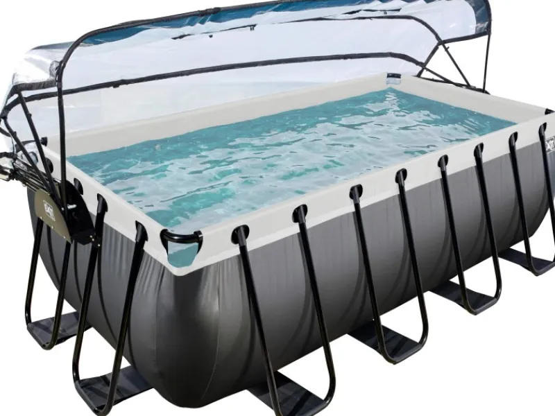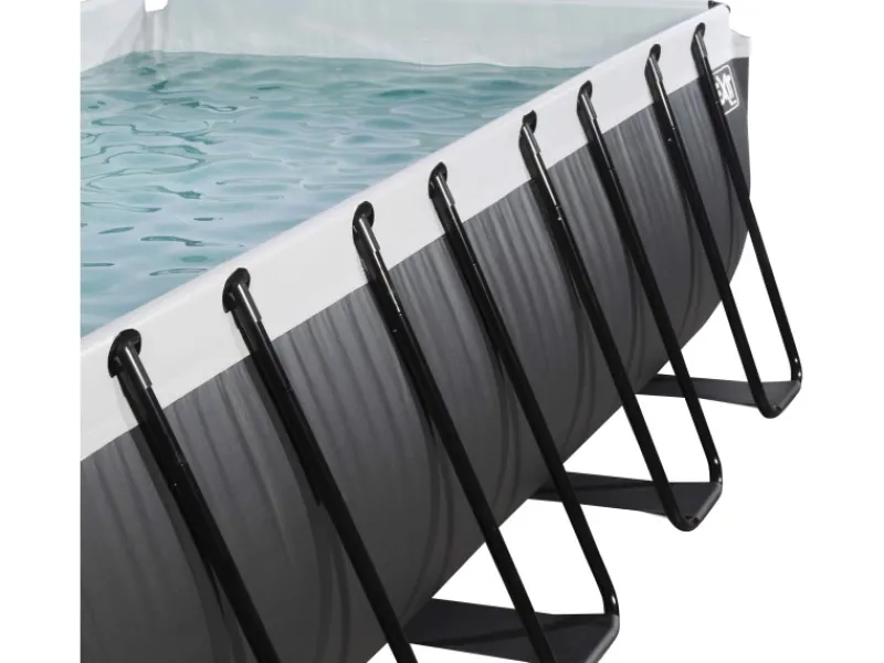 Der stählerne schwarze Rahmen des Pools ist extra dick mit einem Durchmesser von 50 mm und die Rahmenbeine sorgen für optimale Stabilität, sodass der Pool immer fest stehen bleibt. Natürlich ist auch an Langlebigkeit gedacht: der schwarze Rahmen ist galvanisiert und pulverbeschichtet, damit Rost keine Chance hat.