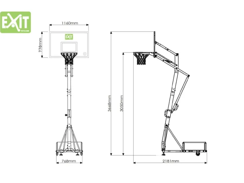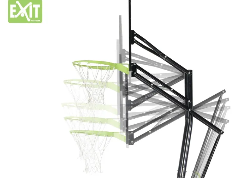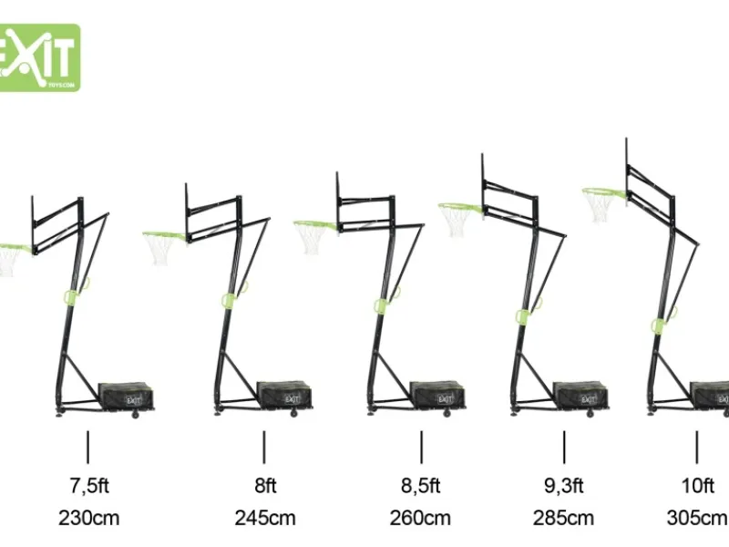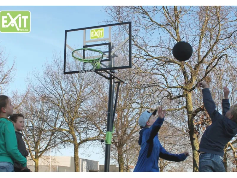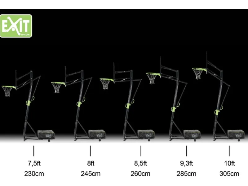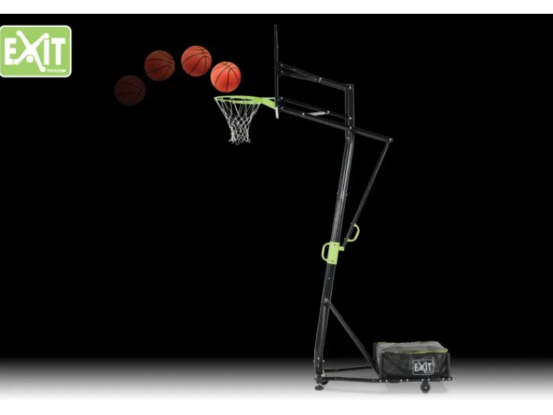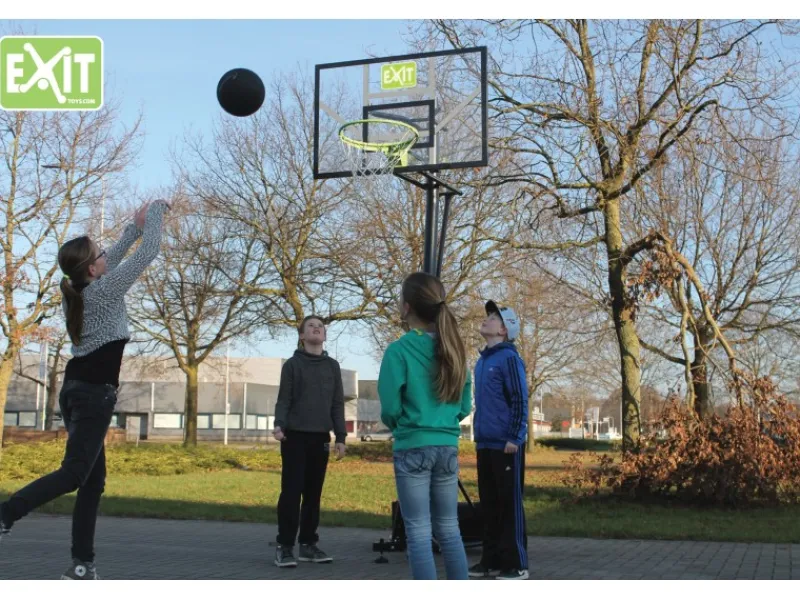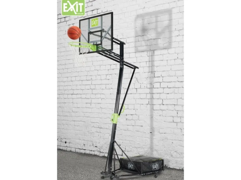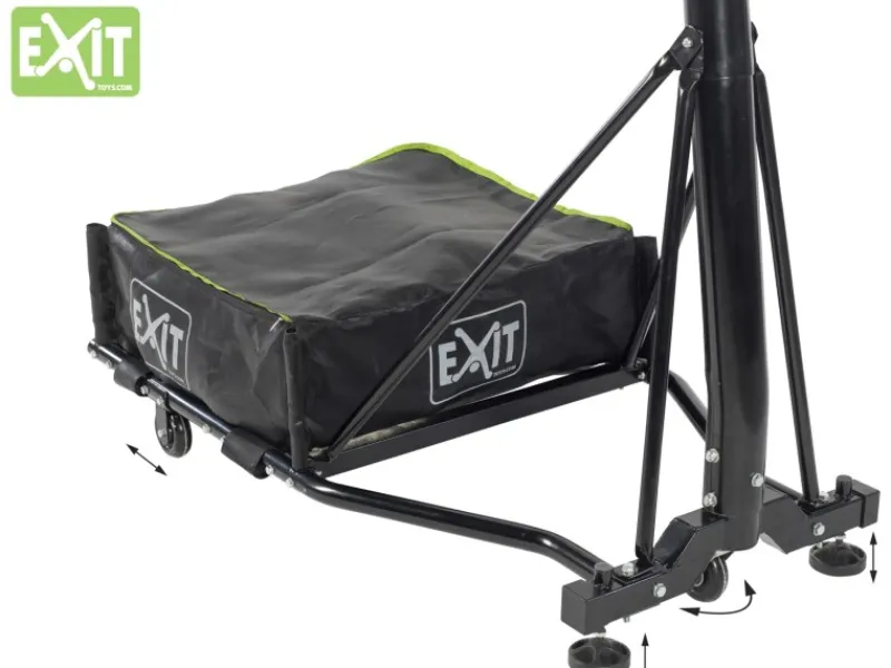 Der EXIT Galaxy versetzbare Basketballkorb auf Rädern sorgt für stundenlangen Basketballspaß. Dieses Basketballsystem ist mit einem einzigartigen Rahmen auf Rädern ausgestattet, sodass du einfach an jedem Ort Basketballspielen kannst. Der Rahmen des versetzbaren Galaxy Basketballkorbes ist mit einem einzigartigen System von drei stabilen Rädern und einem Gegengewicht ausgestattet. Dadurch kannst du den Basketballkorb einfach versetzen ohne erst den Rahmen zu kippen. Das drehbare Rad an der Vorderseite sorgt dafür, dass du in alle Richtungen lenken kannst. Mit dem Gegengewicht werden 3 Sandsäcke geliefert, die du füllen und in die Hülle setzen kannst, damit der Rahmen fest auf seinem Platz stehen bleibt.Der EXIT Basketballkorb kann in fünf verschiedenen Ständen eingestellt werden (230 – 245 – 260 – 285 – 305 cm). Die Basketballsysteme von EXIT Toys sind robust und für eine lange Lebensdauer aus hochwertigen Materialien hergestellt.