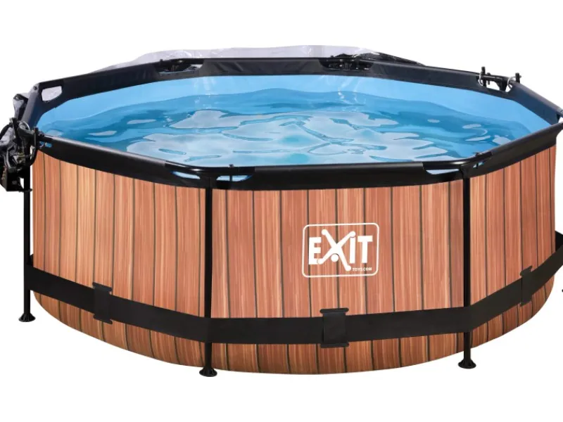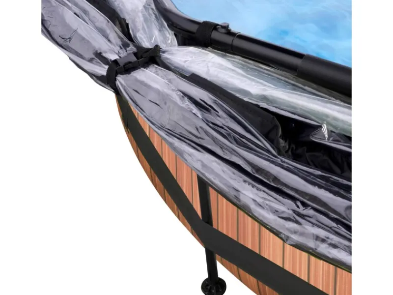 Das tolle Holzmuster und der schwarze Rahmen geben dem Wood Pool eine einzigartige Ausstrahlung und dank des natürlichen Aussehens integriert sich der Pool völlig in Ihrem Garten. Die Innenseite des Pools ist blau, sodass Sie das frische Schwimmbad-Gefühl haben.
