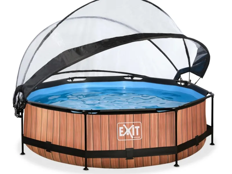 EXIT Wood Pool Braun Ø300x76cm m. Filterpumpe u. Abdeckung*Exit Toys Best