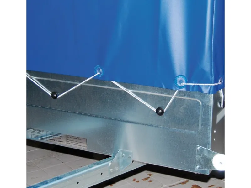 Zur Befestigung einer Abdeckplane oder eines Ladungssicherungsnetzes am Anhänger