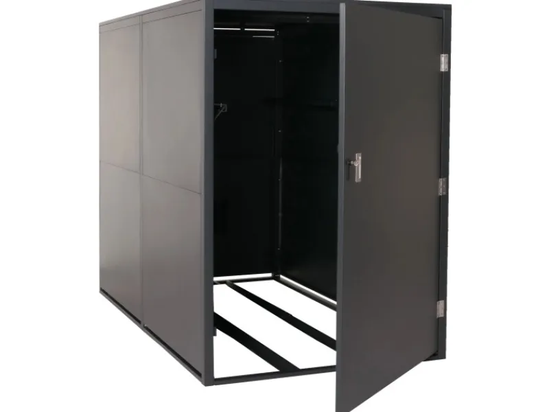 – Optimale Maße: Innenmaße 156x111x202 cm, Abstand zwischen den Fahrradrinnen 25 cm, Tiefe der Rinnen 200 cm – passend für die meisten Standardräder.
