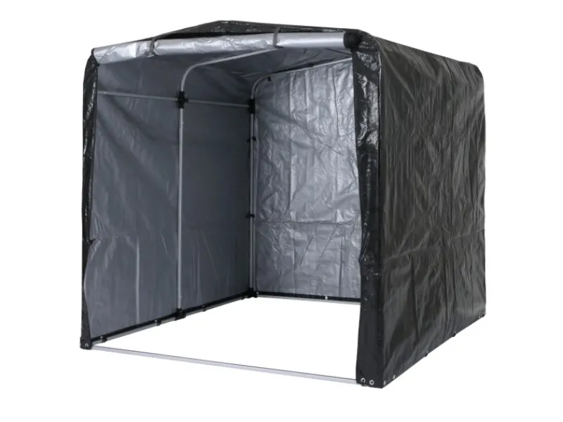 – Durch seine Höhe ist diese Aufbewahrungsgarage bequem betretbar und bietet Platz für 4-5 Fahrräder. Dank des Fixierzubehörs kann die Foliengarage sicher am Untergrund verankert werden.