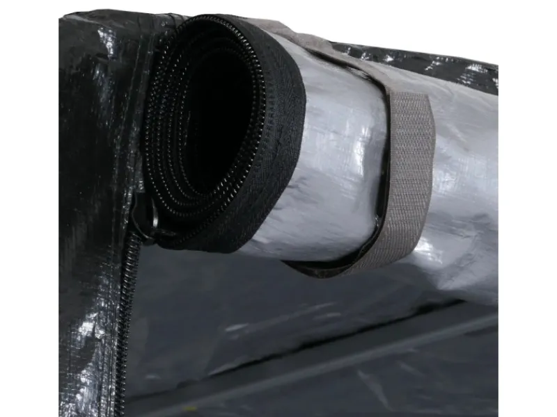 Die robuste Konstruktion der Fahrradgarage N61 trotzt Wind und Wetter, sodass Ihre Fahrräder auch bei stürmischem Wetter sicher geschützt sind. Im Lieferumfang ist praktisches Fixierzubehör enthalten, das sowohl für weichen als auch für harten Untergrund geeignet ist, wodurch die Garage sicher und stabil verankert werden kann. Die Türe der Garage ist mit einem hochwertigen Reißverschluss versehen, der eine einfache Handhabung ermöglicht und gleichzeitig einen festen Verschluss gewährleistet. Zusätzlich ist eine Klettverschluss-Halterung für die Türe integriert, die ein ungewolltes Öffnen durch Wind verhindert und so für zusätzliche Sicherheit sorgt.