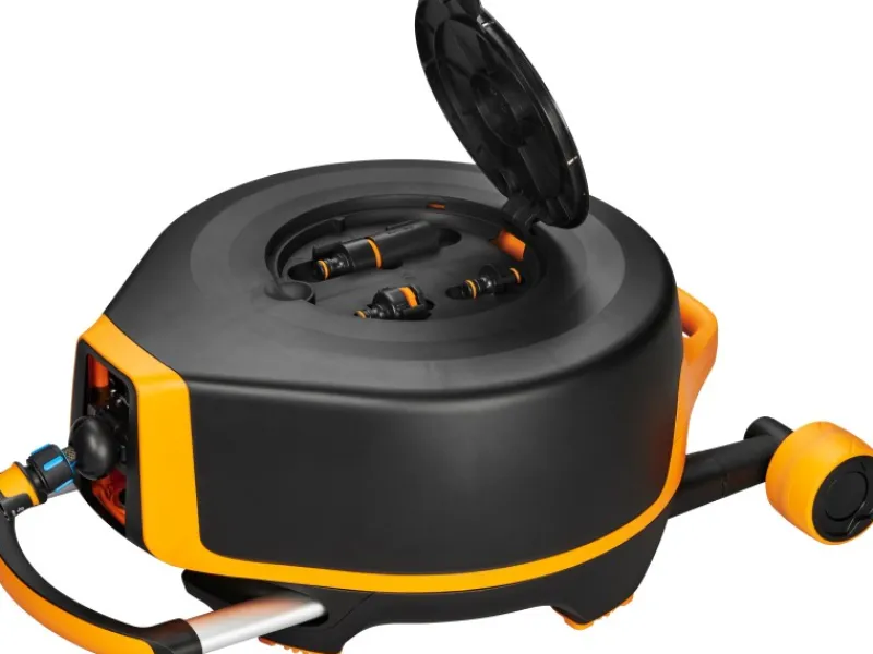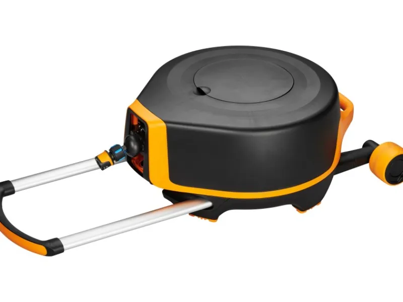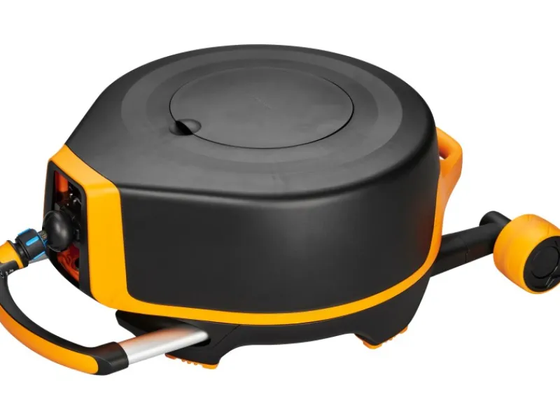 Schlauchtrommel mit automatischem Aufroller zur einfachen Gartenbewässerung