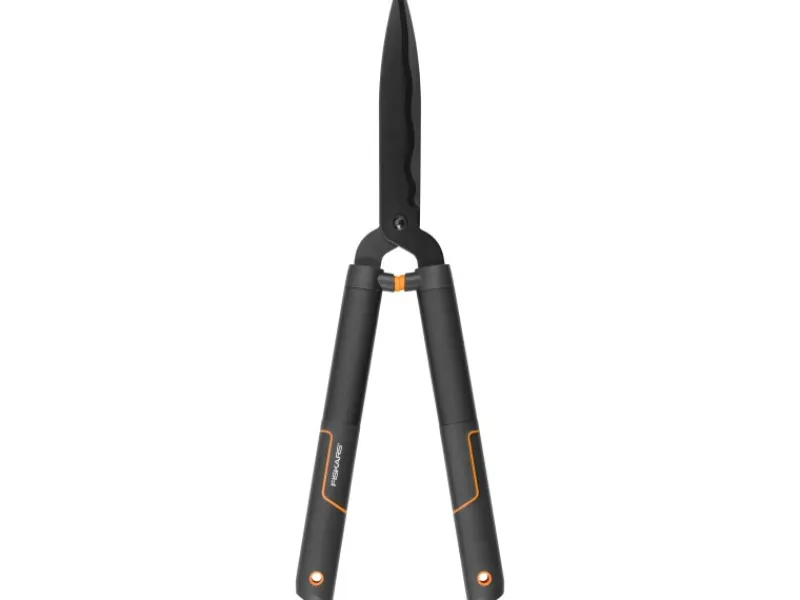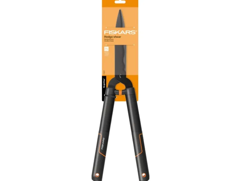 Die Fiskars Heckenschere ist in einem besonderen Design gestaltet: Schlicht, in der Grundfarbe Schwarz. Die orangefarbenen Elemente verleihen dieser Fiskars Heckenschere zusätzliche ein neuartiges, mondänes Design.