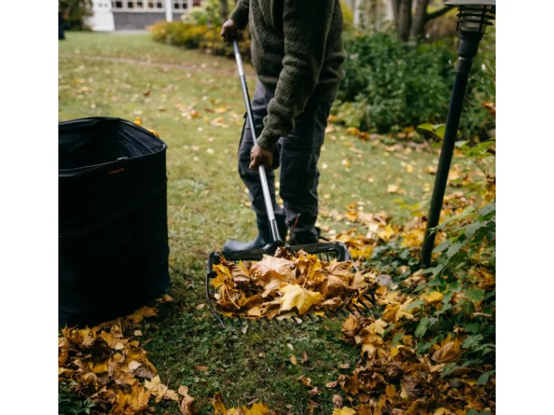 Der Schaufelkopf ist groß und robust, bleibt jedoch leicht, dank der flexiblen Zinken. Der Stiel aus gehärtetem Aluminium und der tropfenförmige Softgrip-Griff mit T-förmigem Ende bieten optimalen Halt und hohen Komfort.