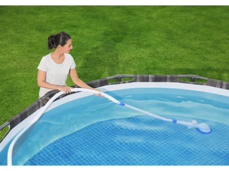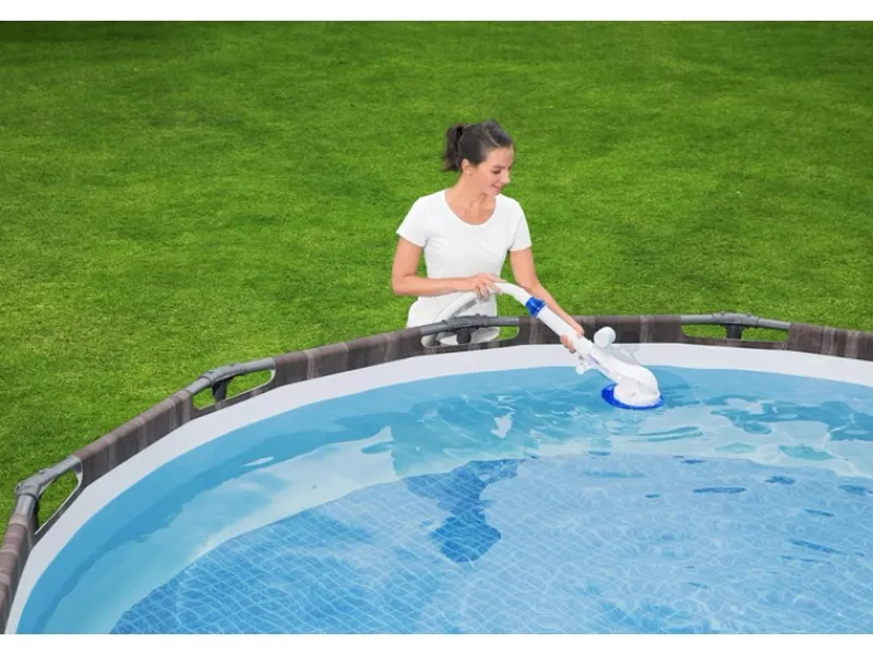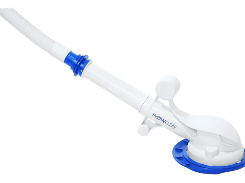 Der Flowclear Poolsauger Aquasweeper von Bestway ist für Pools bis 670 cm geeignet. Die patentierte Technologie ist speziell für Filterpumpen ab einer Leistung von 3.785 l/h sowie Sandfilteranlagen ab einer Leistung von 3.028 l/h nutzbar. Die regulierbare Saugfunktion ermöglicht die Verwendung mit Pumpen mit höherer Leistung. Der Roboter ist einfach zu bedienen: Der Sauger startet automatisch mit Einschalten der Pumpe. Sehr komfortabel ist die geräuscharme & schnelle Reinigung des Poolbodens. Der integrierte Vorfilter sammelt grobe Verunreinigungen, dadurch wird das Filtersystem entlastet . Das breite Clip-System an der Bodenplatte ermöglicht einen einfachen Zugang zum Schmutzbehälter, das Ausgleichsgewicht sorgt für optimale Manövrierfähigkeit. Im Lieferumfang ist ein Schlauch mit 750 cm Gesamtlänge enthalten.