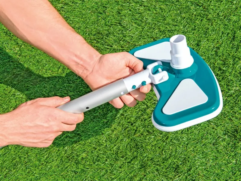 Der Flowclear Poolsauger-Aufsatz ist eine praktische Lösung für die Poolpflege, die an das Filtersystem angeschlossen wird. Er entfernt Verschmutzungen vom Boden des Pools und sorgt so für eine saubere Umgebung. Durch die Verwendung einer passenden Stange (nicht im Lieferumfang enthalten) kann die Bewegung des Poolsaugers gesteuert werden. Mit Bürsten an den Rändern löst er auch hartnäckige Verschmutzungen wie Algen. Die kompakte Größe ermöglicht es, auch schwer zugängliche Ecken zu reinigen.