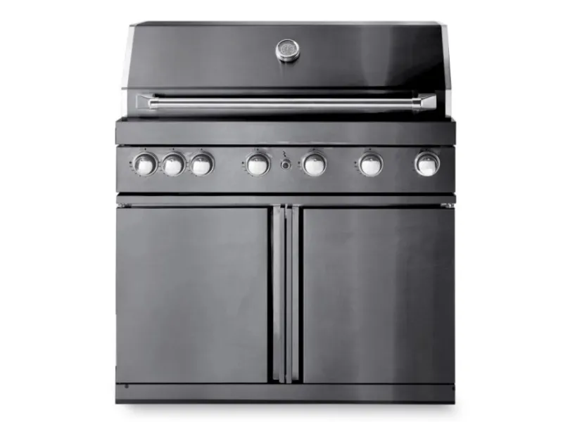 Exklusiver und imposanter Grill aus Edelstahl 304 SS. Ein freistehender Gasgrill mit 6 leistungsfähigen und effizienten Brennern. Robuste Knäufe in Chrom mit LED-Beleuchtung und Grilllicht auf der Innenseite, die das Grillen spätabends erleichtert und den Grill in einen luxuriösen Mittelpunkt des Platzes im Freien verwandelt. Mit dem Grill werden 2 ordentliche Grillroste in 5 mm Stärke, ein Warmhalterost und eine Rotisserie mitgeliefert, die Essenszubereitung auf allen Niveaus erlauben – damit können Sie jeden Tag saftige Steaks, im Ganzen gegrilltes Hähnchen und Gemüse genießen!