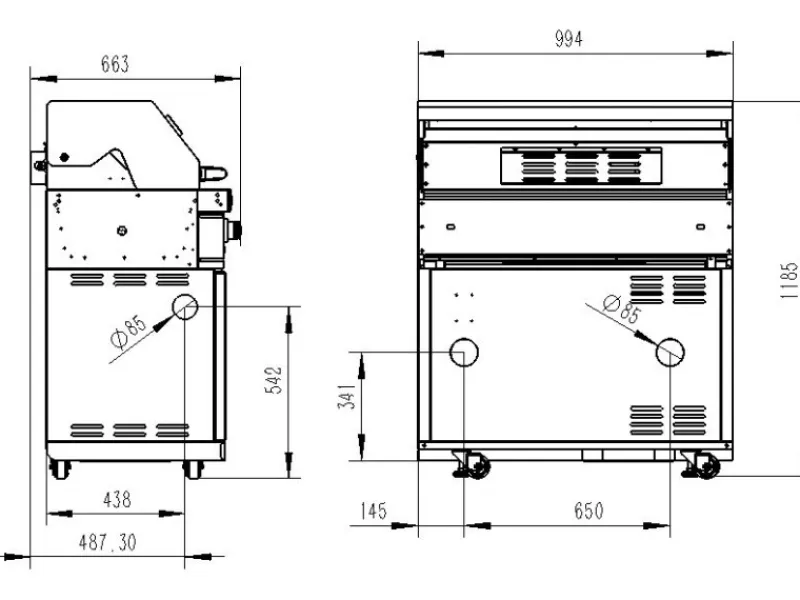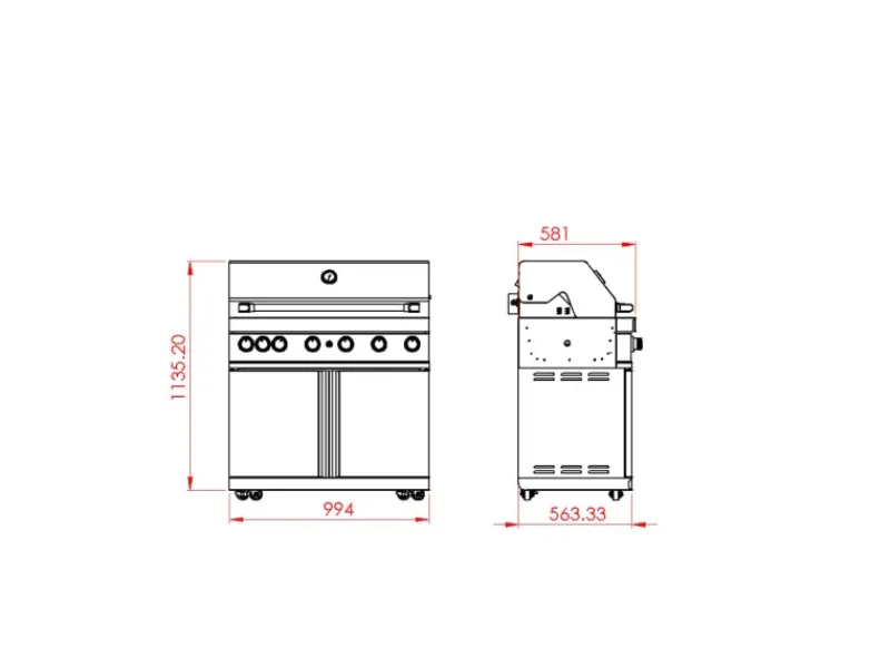Der Grill verfügt zudem über zwei geräumige Unterschränke mit hervorragendem Stauraum beispielsweise für Ihr Grillbesteck und die Gasflasche. Sorgen Sie für noch mehr Grillvergnügen und ergänzen Sie den Grill mit einem freistehenden Seitenbrenner – das ist die perfekte Kombination für perfektes Grillen nahezu auf Gastronomielevel in Ihrer Outdoorküche.