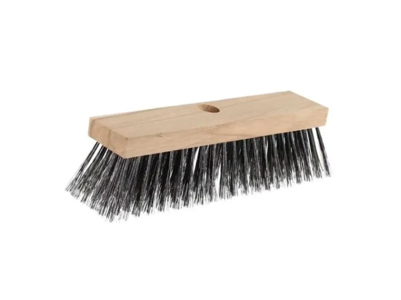 Der Stahldrahtbesen hat einen Korpus aus Holz und eine Arbeitsbreite von 30 cm. Mit seinen Stahldrahtborsten lassen sich hartnäckige Verschmutzungen im Außenbereich entfernen.