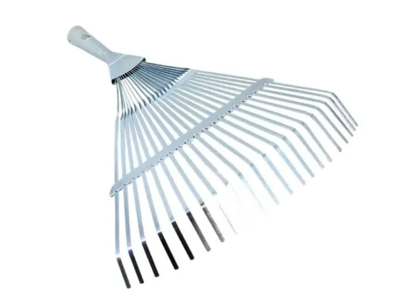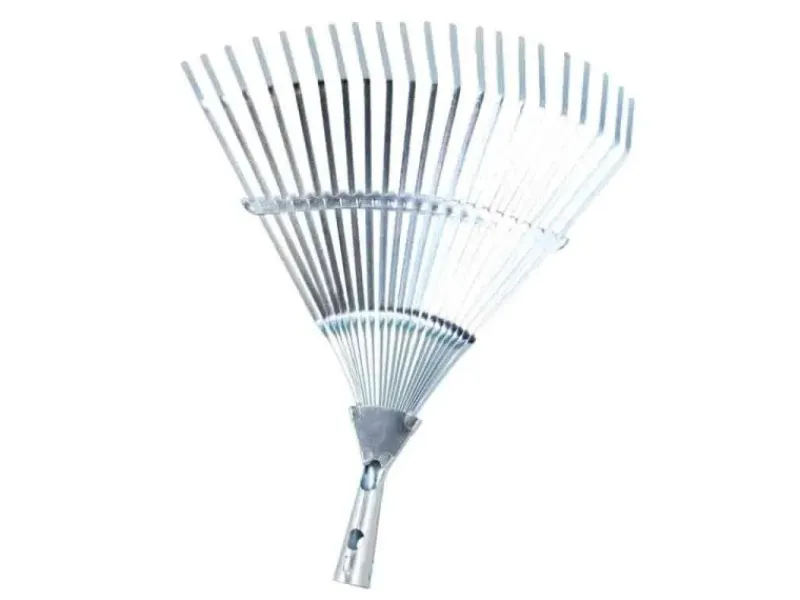 Der Laubbesen aus verzinktem Metall hat 21 feststehende Zinken. Mit einer Arbeitsbreite von 40 cm eignet er ideal, umGarten und Rasen von Laub zu befreien.