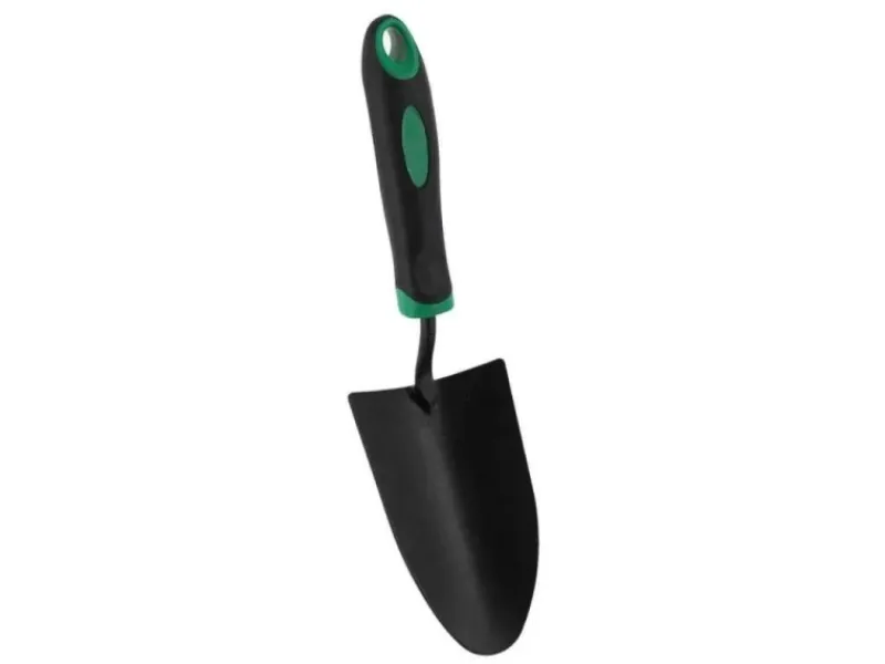 Die Blumenkelle aus Stahl ist 32 cm lang und hat einen Kunststoffgriff. Der Griff lässt sich durch die Daumenmulde gut greifen. Außerdem hat der Griff hat ein Loch, um die Blumenkelle ordentlich zu verstauen. Mit der Blumenkelle lassen sich Jungpflanzen und Blumen in Beete einsetzen oder umtopfen. Durch die spitz zulaufende Form fällt das Einstechen in die Erde leicht.