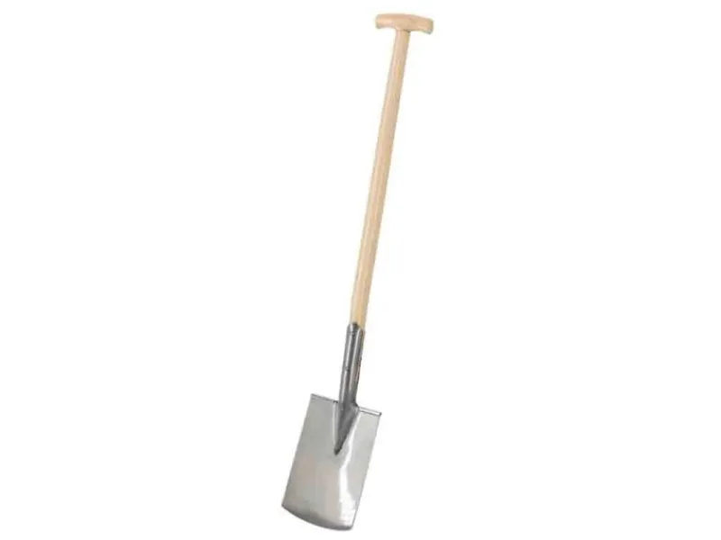 Das hochwertige Schaufelblatt ist aus gehärtetem Stahl gefertigt und poliert. Die aufgesetzten Tritthülsen am Spatenkopf unterstützen die Arbeiten im Garten optimal.