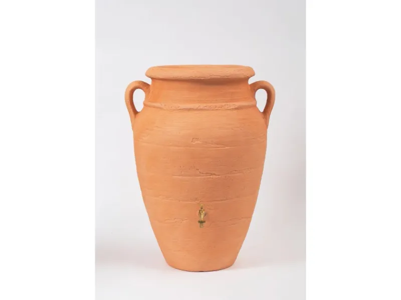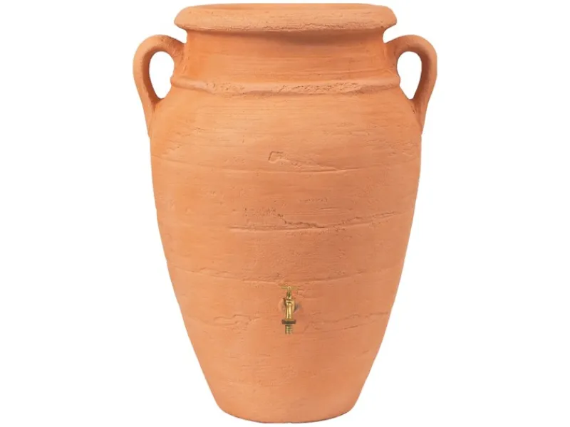 Die Wasserentnahme ist durch Auslaufhahn oder Universal-Schlauch-Set denkbar einfach. Zudem ist die Regenwasser-Amphore UV-stabil und witterungsbeständig.