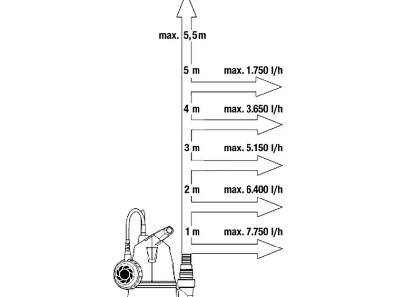 Die Tauchpumpe lässt sich vielseitig sowohl im Haus als auch im Garten verwenden, wie zum Beispiel zum Abpumpen von Wasser aus Schwimmbecken, Sickerschächten und natürlich überfluteten Kellern durch aufsteigendes Grundwasser. Ebenso lässt sie sich benutzen, um Regenwasser aus einer Tonne zu pumpen. Dank des 10 Meter langen Stromkabels kann die Pumpe effektiv bis zu einer maximalen Tiefe von 6 Metern eingesetzt werden.