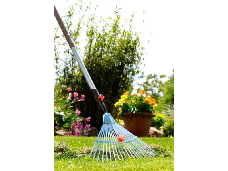Der Verstellbesen passt zu allen Gardena combisystem-Stielen, wobei Gardena eine Stiellänge von 130 cm empfiehlt, abhängig von der Körpergröße.