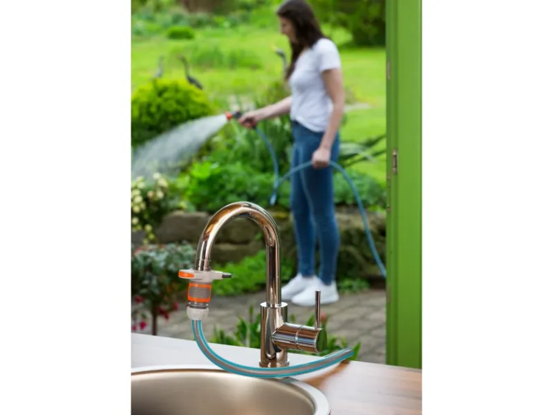 Der Hahnverbinder sorgt für ein schnelles An- und Abkuppeln des Gardena Systems. Er passt hervorragend an Indoor-Wasserhähne mit M 22 x 1 Außen- und M 24 x 1 Innengewinde. Schlauchverbinder und Wasserstop stellen jeweils den Übergang zu 13 mm (1/2″)- und 15 mm (5/8″)-Schläuchen her. Der Wasserstop sorgt außerdem für ein einfaches Wechseln der Anschlussgeräte durch automatisches Stoppen des Wasserflusses während der Entkopplung.