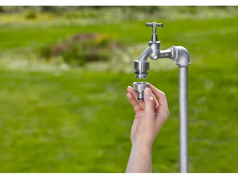 Der Gardena Premium Hahnverbinder in hochwertiger, robuster Metall-Ausführung ermöglicht den einfachen und sicheren Anschluss eines Gartenschlauchs an einen Wasserhahn mit Gewinde. Das spritzfreie Befüllen von Eimern und Gießkannen ist durch einen gebündelten Wasserstrahl auch dann möglich, wenn kein Schlauch angeschlossen ist. Frostsicher. 5 Jahre Garantie.
