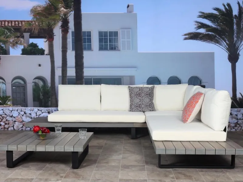 – Dank der wasserabweisenden Bezüge ist diese Sitzgruppe perfekt für jeden Außenbereich geeignet. Zudem sind die Sitz- und Rückenpolster sehr bequem und bieten einen hohen Sitzkomfort, auch über einen längeren Zeitraum hinweg.