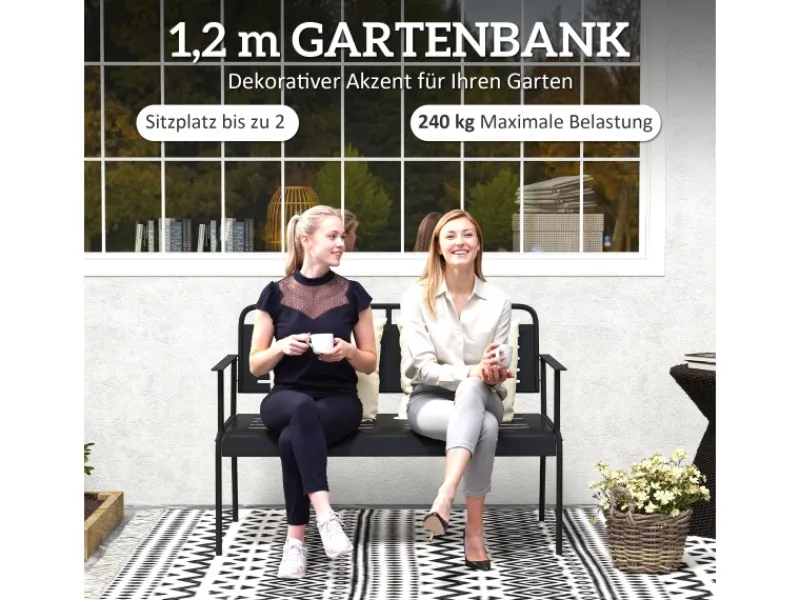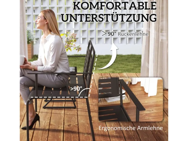 ● Robuster Stahlrahmen der Parkbank sorgt für feste Unterstützung