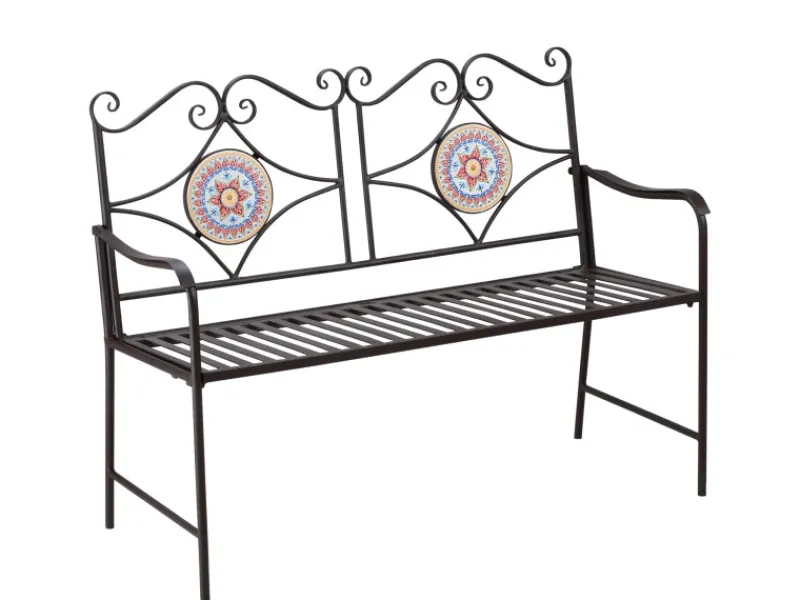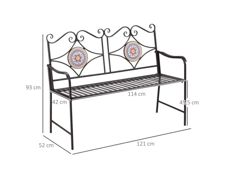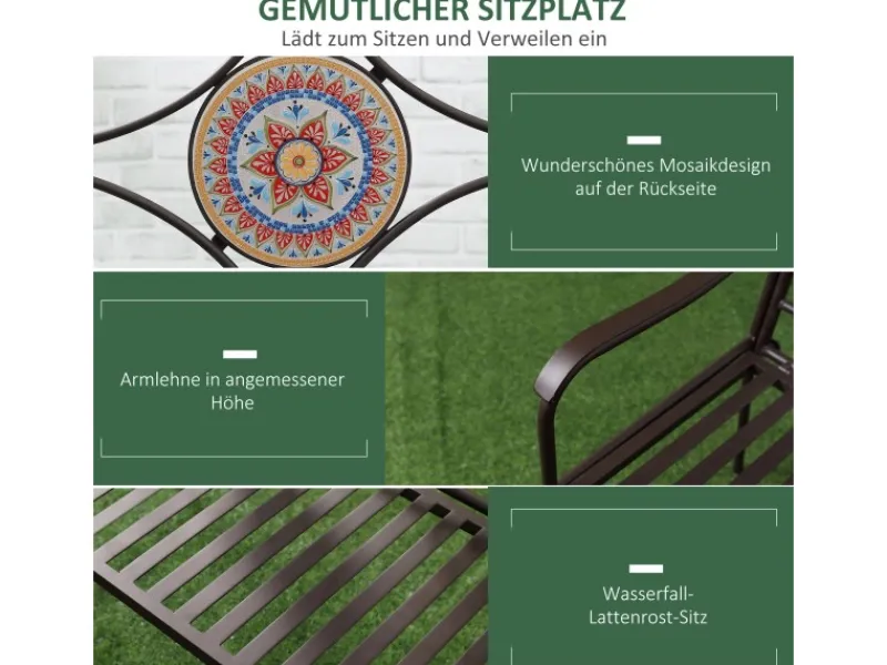 Gartenbank mit Ornament Sitz- und Rückenfläche und Mosaik*Outsunny