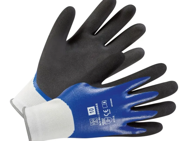 Das Design des Handschuhs zeichnet sich durch ein klares Blau auf der Handoberfläche, einem unempfindlichen Schwarz auf den Fingerkuppen und Handinnenflächen sowie Weiß am Handgelenk aus. Die Stulpe am Handgelenk schützt vor dem Eindringen von Schnittrückständen und weiteren Fremdkörpern.