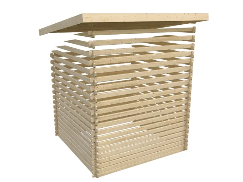 Das Blockbohlenhaus aus nordischer Fichte wird aus 28 mm Wandbohlen in klassischer Blockbohlenbauweise gefertigt und kann somit rasch und einfach aufgebaut werden. Bei der Blockbohlenbauweise werden die Wandbohlen reihum montiert. Begonnen wird mit einer halben, also unten glatten Bohle. Die patentierte 6-Plus-Eckverbindung sorgt dabei für höchste Wind- und Regendichte. Die Schraublöcher in den Blockbohlen sind werkseitig vorgefertigt und vereinfachen den Aufbau enorm. Das praktische Pultdach besteht aus Masssivholz. Der vordere Dachüberstand ist mit 270 mm ausreichend groß dimensioniert, um den Eingangsbereich wirkungsvoll zu schützen. Dank einer Firsthöhe von 205 cm hat das Gerätehaus innen viel Platz. Kesseldruckimprägnierte Bodenbalken sorgen für optimalen Schutz gegen aufsteigende Feuchtigkeit. Durch die Positionierung unter dem Gartenhaus schützen die Bodenbalken effektiv vor Staunässe und Spritzwasser. Das Gartenhaus wird mit der praktischerweise vormontierten Tür im stabilen Massivholzrahmen ausgeliefert und bietet dank der großen Öffnung bequemen Zutritt in das Haus. Nebenbei bietet sie effektiven Schutz vor Diebstahl von den Gegenständen die sich im Haus befinden. Gleichzeitig lassen die großzügigen Lichtausschnitte im jeweiligen Türflügel viel und reichlich Tageslicht in das Gartenhaus einströmen.