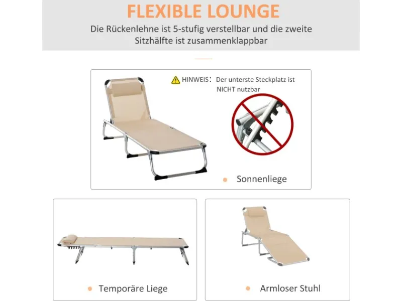 Gartenliege mit Kopfkissen Ergonomisch Beige*Outsunny New