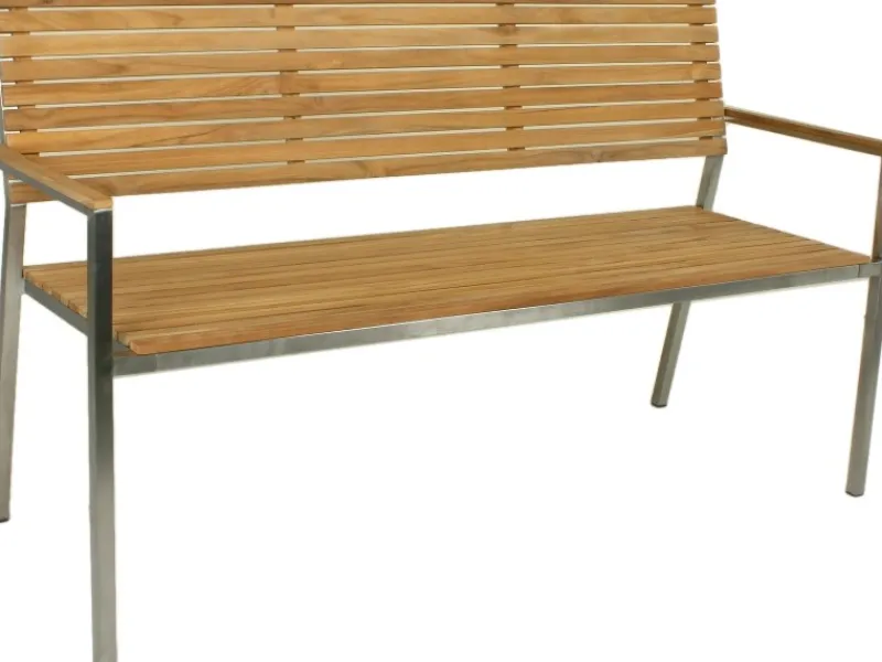 Die 3-Sitzer Bank Denver ist ein komfortables Sitzmöbel für Ihren Garten oder Ihre Terrasse und bietet bequem Platz für drei Personen. Mit ihrem silbernen Edelstahlgestell und der geölten Teakholz-Sitz- und Rückenfläche verleiht sie jedem Raum eine edle Note. Das robuste Edelstahlgestell und das natürliche Teakholz bilden eine harmonische Kombination, die für Langlebigkeit und Stil steht. Die geölte Oberfläche sorgt nicht nur für eine angenehme Haptik, sondern erleichtert auch die Pflege.