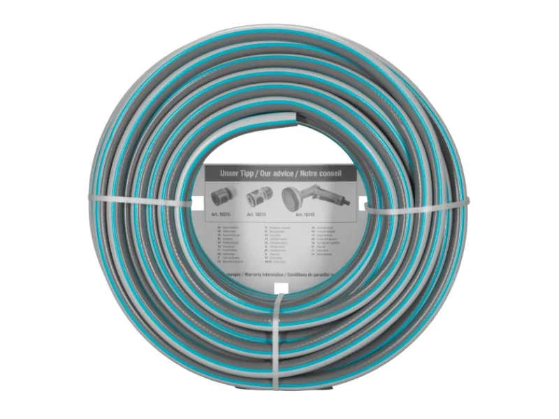 Der Schlauch ist aus hochwertigem PVC und Kreuzgewebe gefertigt. Dadurch ist er formstabil, robust und UV-beständig. So können Sie Ihren Gartenschlauch draußen aufbewahren, ohne dass er an Qualität verliert. Zudem ist der Gardena Schlauch durch die hohe Wandstärke druckfest und dadurch sehr langlebig. Er ist für einen Berstdruck bis zu 22 bar geeignet.