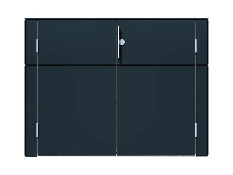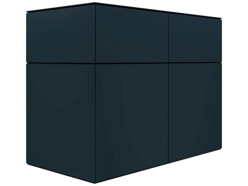 Die Konstruktion und der Aufbau dieses Gartenschranks sind einfach und präzise. Die Rahmenkonstruktion besteht aus visuell und technisch geprüften fein gehobelten Fichtenabschnitten, die für eine Eigenmontage vorbereitet sind. Zum Bausatz gehören neben den zugeschnittenen und vorgebohrten HPL-Platten auch EPDM-Bänder als Zwischenlage. Dieses Design-HPL-Gartenhaus wird ohne Boden auf Massivholzrahmen aufgebaut.