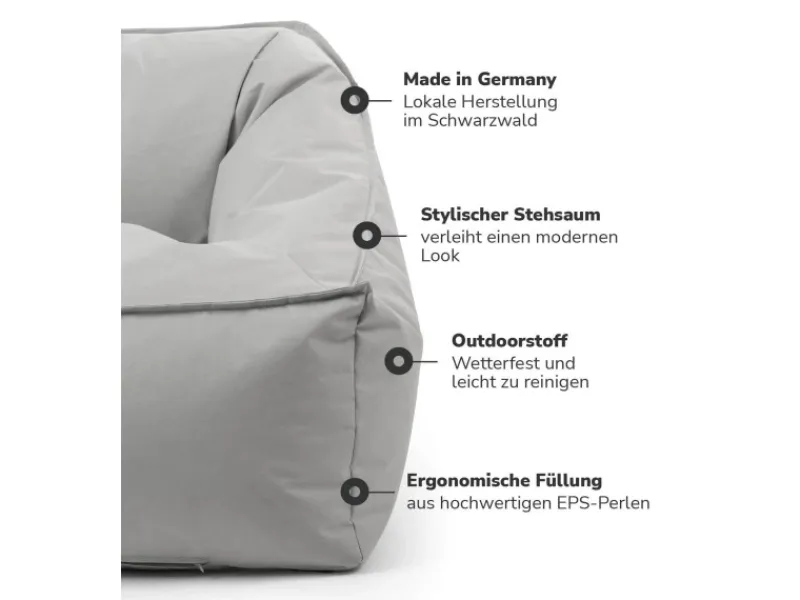 ULTRALEICHT & KOMFORTABEL! Dank flexibler EPS-Perlen-Füllung passt sich der XXL Sitzsack deinem Körper an. Du kannst den Füllgrad individuell anpassen – einfach Perlen entnehmen oder nachfüllen. Falls das Volumen mit der Zeit nachlässt, sorgt ‚Der Nachfüller‘ für frischen Sitzgenuss.BEWUSSTE MÖBELMARKE UNTERSTÜTZEN! Wir sind ein passioniertes Unternehmen aus Köln und möchten dein Zuhause mit bewussten, funktionalen & erschwinglichen Möbeln bereichern.