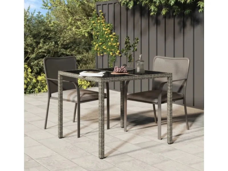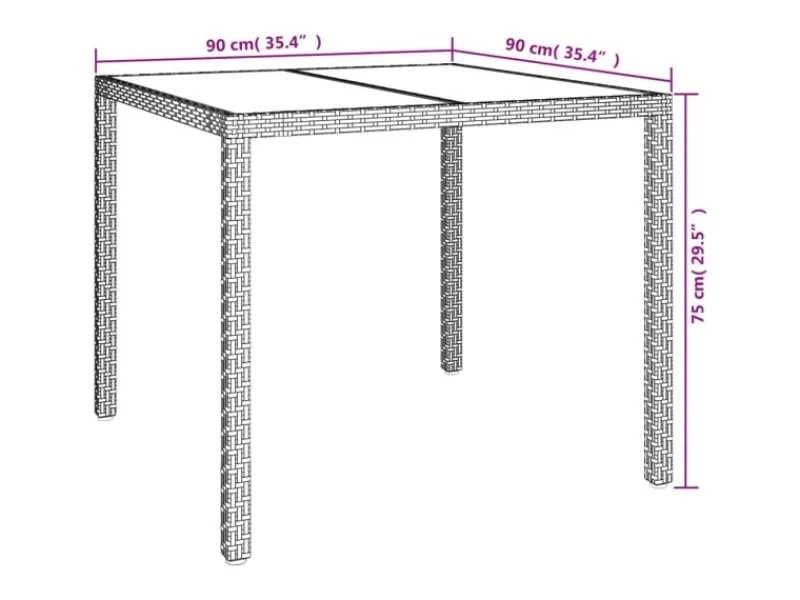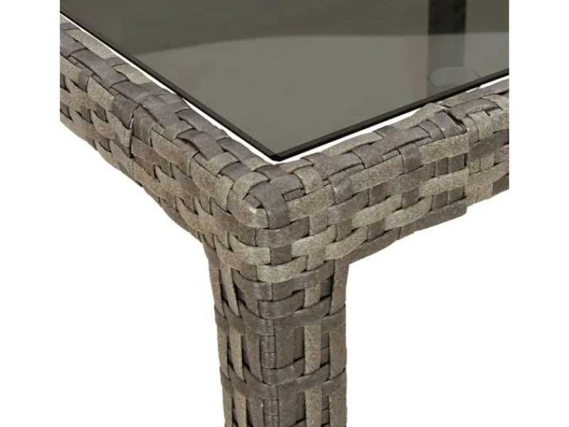 Material: Poly Rattan, pulverbeschichteter Stahl, gehärtetes Glas