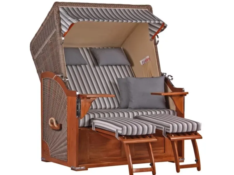 GarWoh Strandkörbe|Strandkorb Nordstrand Mahagoni PE Grey Dessin 545