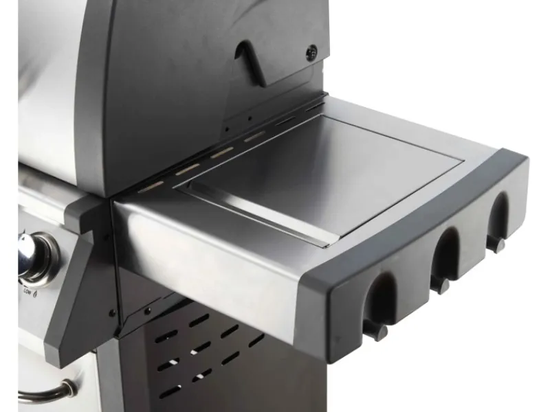 Der Grill bietet großzügige Ablagen, sodass Sie alle benötigten Utensilien stets griffbereit haben. Dank großen Rädern und Rollen mit integrierten Bremsen kann der Grill bequem transportiert und am Einsatzort sicher abgestellt werden.
