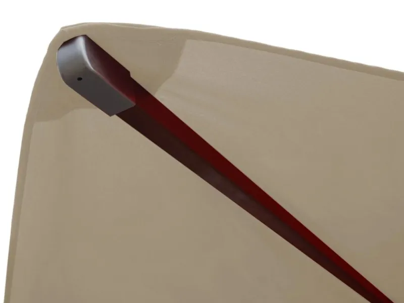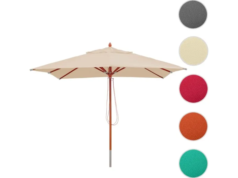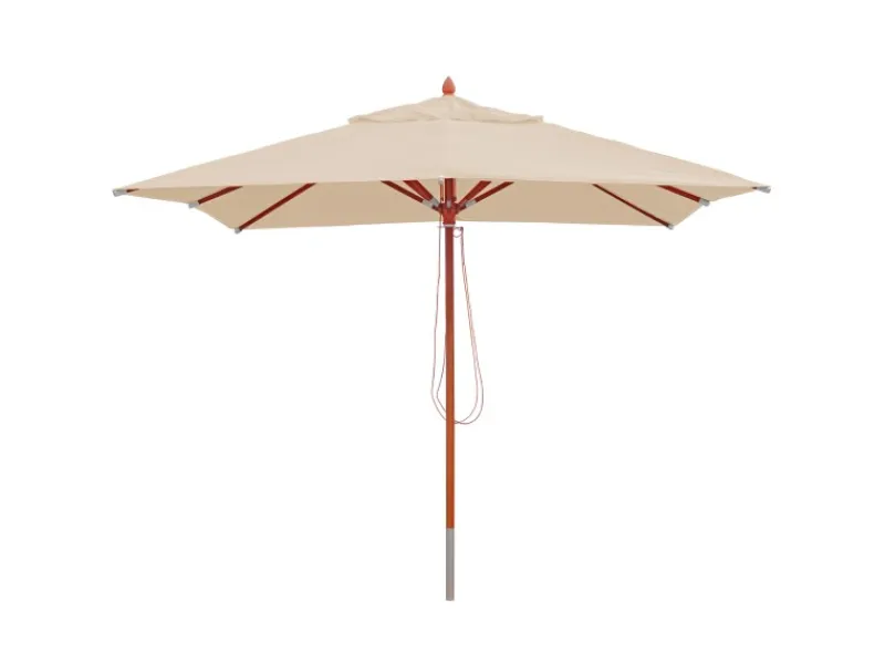 Sonnenschutz Deluxe! Mit den ersten wärmenden Sonnenstrahlen zieht es uns nach draußen. Egal ob auf der Terrasse oder im Garten – dieser Sonnenschirm wird garantiert zum Blickfang. Hier vereinen sich Design und UV-Schutz in perfekter Kombination. Der sichere Stand wird durch die mit Aluminium verstärkte Verstrebung und dem massiven 5 cm starken Holzmast gewährleistet. Das Winddach sorgt dafür, das kein gefährlicher Windfang entsteht und die Luft zirkulieren kann. Auch bei einem leichten Regenschauer können Sie in Ruhe sitzen bleiben. Dafür sorgt der wasserabweisende Stoff aus gewebtem Polyester. Das Mastende ist durch eine ca. 40 cm lange Aluminiumhülse ummantelt, welche ein Eindringen von Feuchtigkeit in das Holz verhindert. Der Schirm ist damit sowohl in einer Bodenhülse, als auch in einem Schirmständer bedenkenlos nutzbar. Durch das leichtgängige Seilzugsystem ist das Öffnen und Schließen kinderleicht. Dank der modernen Farbauswahl ist für jeden Geschmack das richtige Modell dabei. Überzeugen Sie sich selbst von Qualität und Design.