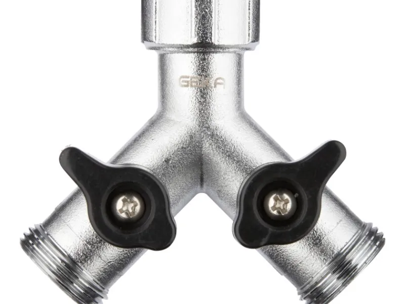 Das Geka plus-Zweiwegeventil mit drehbarer Überwurfmutter endet mit zwei 24,1 mm (3/4″) Außengewinden und findet Anwendung in Garten, Haus und Werkstatt, für die einfache Verteilung direkt am Wasserhahn. Es ist kombinierbar mit allen Anschlüssen mit 3/4″ Innengewinde und Schlauchtypen. Zudem ist es besonders langlebig und einfach zu bedienen. Es wird mit der drehbaren Anschluss-Überwurfmutter IG 24,1 mm (3/4″) montiert und hat individuell regelbare Ventile.