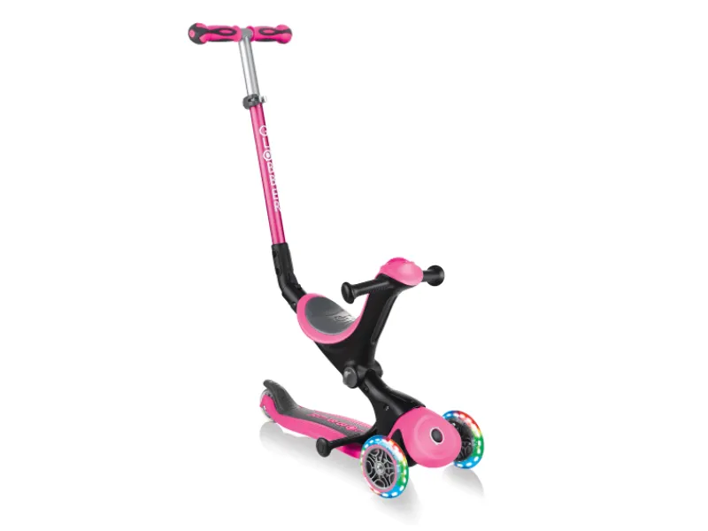 – Einfache, werkzeuglose Umbaumöglichkeit zu Dreirad mit Schubstange, Laufrad und Scooter