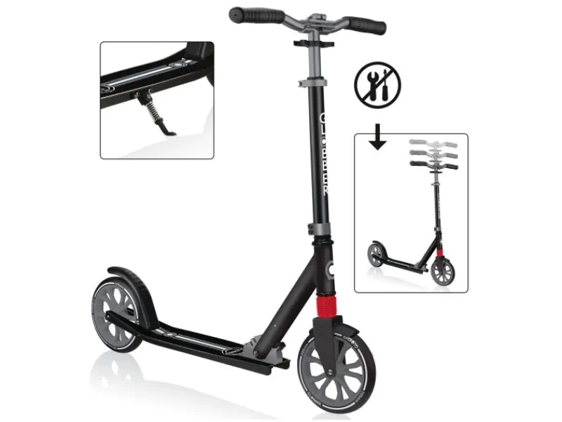 Hochwertiger Scooter mit Frontfederung und patentiertem Lock-Button Klappmechanismus
