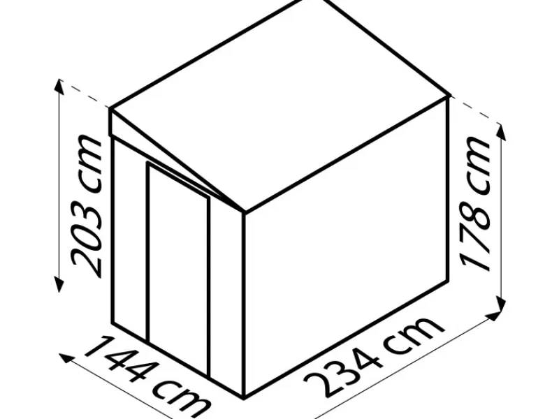 Das Holz-Gartenhaus verfügt über eine robuste Konstruktion, mit einer Wandstärke von 0,3 mm. Das Dach des Gerätehauses ist als Pultdach konstruiert. Die Firsthöhe beträgt 203 cm, wodurch eine angenehme Kopffreiheit im Innenraum gegeben ist. Die Oberfläche des Metall-Gerätehauses ist feuerverzinkt, um es optimal vor Witterungseinflüssen zu schützen und Korrosion vorzubeugen.