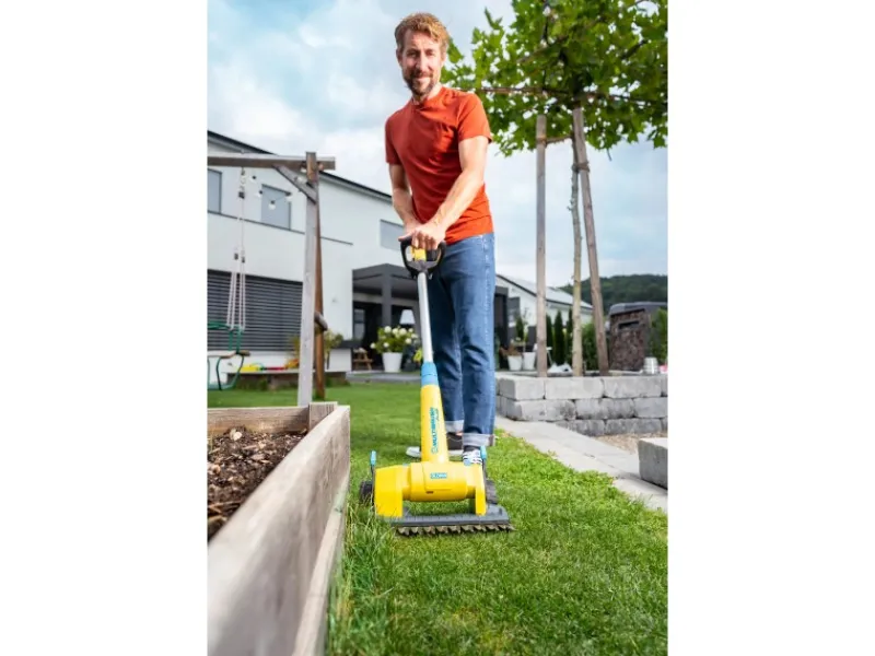 Mit einer großzügigen Schnittbreite von 36 cm und einer 3-stufigen Schnitthöheneinstellung schneiden die gegenläufigen, präzisionsgeschliffenen Messer zuverlässig jeden Grashalm, selbst in randnahen Bereichen und Ecken dank des intelligenten Aufsatz-Designs. Er ist die ideale Ergänzung zum klassischen Roboter-Rasenmäher, um Kanten oder schwer zugängliche Ecken sauber zu schneiden.
