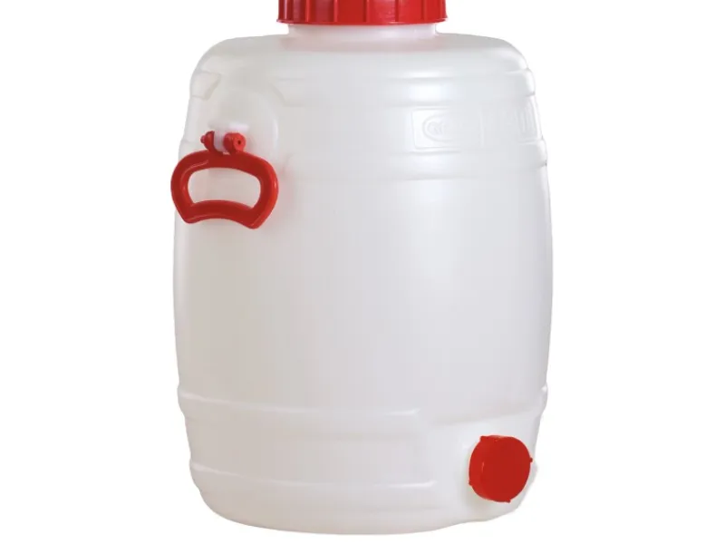 Das neue Graf Universal-Fass bietet Ihnen den Vorteil der vielseitigen Einsatzmöglichkeiten als Lagerfass, Transportfass und Gärfass. Die stabile, starkwandige Ausführung wird mit einem luftdichtem Schraubverschluss verschlossen. Das integrierte Deckel-Innenteil mit zusätzlichem Schraubstutzen ist ebenfalls luftdicht mit der Standard Graf-Verschlusskappe ausgestattet. Durch das transparente Material ist der Füllstand von außen gut sichtbar. Hergestellt aus schlag- und stoßfestem, lebensmittelechtem, ungefärbten Polyethylen. Temperaturbeständig von – 20°C bis + 50°C. Außerdem auch gegen die meisten Säuren und Laugen beständig – bitte Beständigkeit beim Hersteller anfragen.