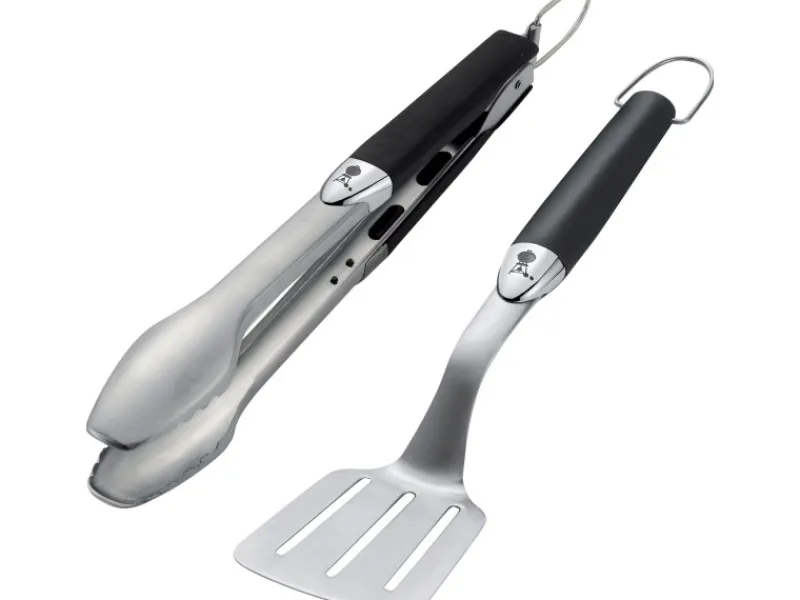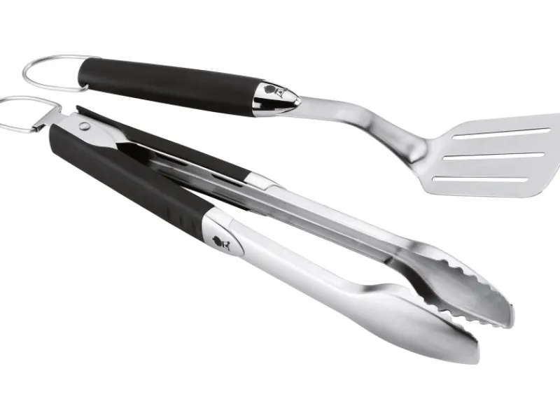 Ob zu Hause oder unterwegs: Das Grillbesteck bereichert jedes Grillereignis und ist für Grillfans ein Muss. Dank der ergonomischen Kunststoffgriffe liegen die Grillzange und der Edelstahlwender optimal in der Hand. Der lange Griff sorgt außerdem für ein sicheres Auflegen und Wenden des Grillgutes. Der angewinkelte Wender und die Grillzange sind zwei unerlässliche Grillutensilien – ganz gleich, ob Sie im Park Burger wenden oder auf dem Balkon in der Stadt Lachs grillen möchten. Da das Grillbesteck aus hochwertigem Edelstahl besteht, ist es rostfrei und für die Spülmaschine geeignet. Damit gestaltet sich die Reinigung mühelos und wie von selbst. Das praktische Verschlusssystem mit den ausziehbaren Aufhängehaken lässt sich schnell und einfach verstauen. So ist das Grillbesteck-Set auch aufgrund seiner kompakten Größe immer mit dabei.