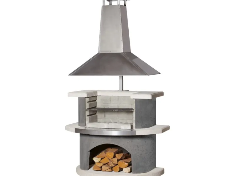 Unterhalb der Feuerstelle befindet sich eine Lagerungsmöglichkeit für das Brennmaterial. Dadurch haben Sie alles direkt zur Hand und der Gartengrill ist schnell einsatzbereit. Die Simsplatte mit ansprechender Edelstahlverkleidung verleiht dem Grillkamin eine edle Optik und dient zugleich als praktische Ablage für Grillutensilien, wie Grillbesteck und Geschirr.