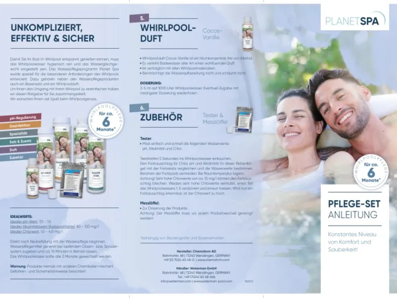 Die Anwendung gestaltet sich dank vorportionierter Beutel denkbar einfach. Darüber hinaus finden Sie bei Planet Spa Zubehör für alle Spas.