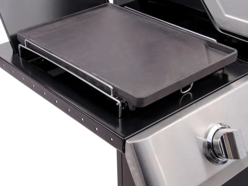 Die Char-Broil Gussgrillplatte passt auf jedes Gasgrill Modell und bietet Abwechslung in Ihrem Grillerlebnis. Die Platte bietet die Möglichkeit neben Ihrem Hauptgrillgut, wie Fleisch und Gemüse, andere Zutaten wie Eier oder dünnen Speck zuzubereiten.