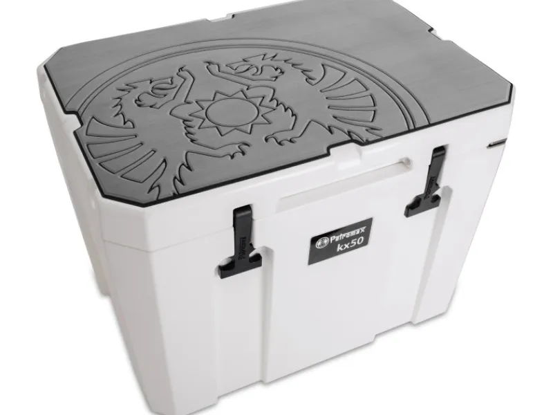 Die Verzurr-Punkte sind in der Auflage ausgespart, somit kannst du dein Ultra-Passivkühlsystem nach wie vor beim Transport sichern. Der zusätzliche Belag ist in zwei Farbvarianten und jeweils zwei Gestaltungen erhältlich. Frei wählbar in Braun oder Grau – entweder mit Linienstruktur und Petromax-Schriftzug oder mit traditionellem Drachenlogo: Du allein bestimmst, wie deine nächstes Naturerlebnis aussieht.